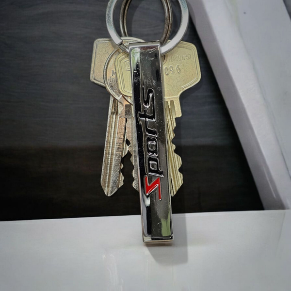 Een unieke robuuste S-Sports sleutelhanger in mooi chroom metaal