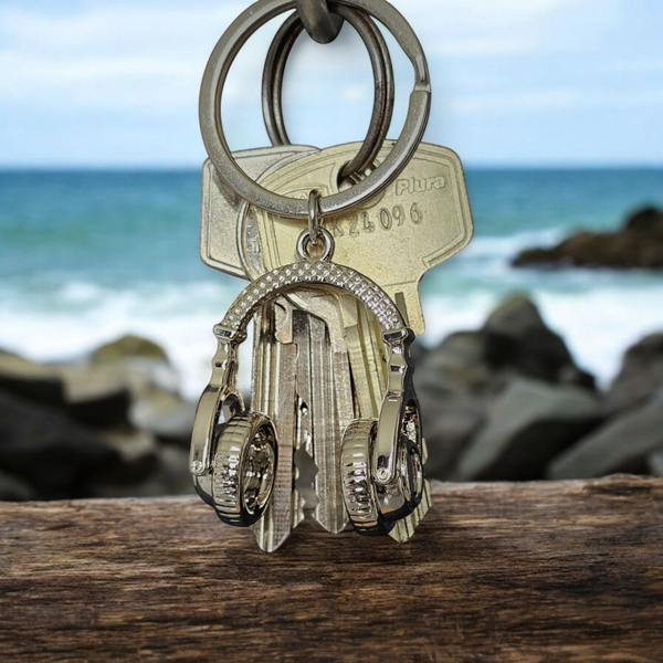 Een mooie koptelefoon sleutelhanger met bewegende delen voor de muziekliefhebber of DJ.