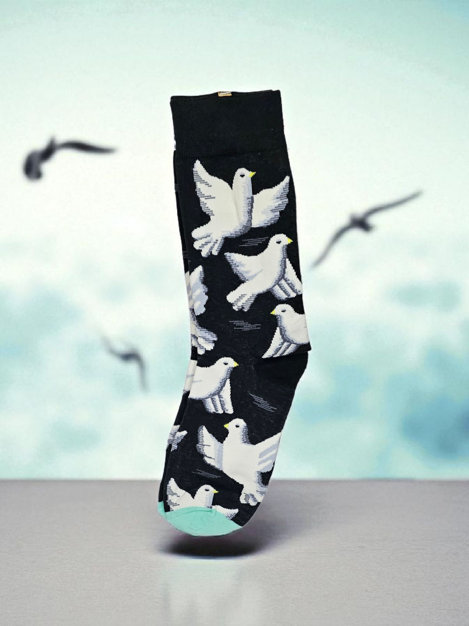 mooie unieke one size (38-43) sokken in een vredes duif print.