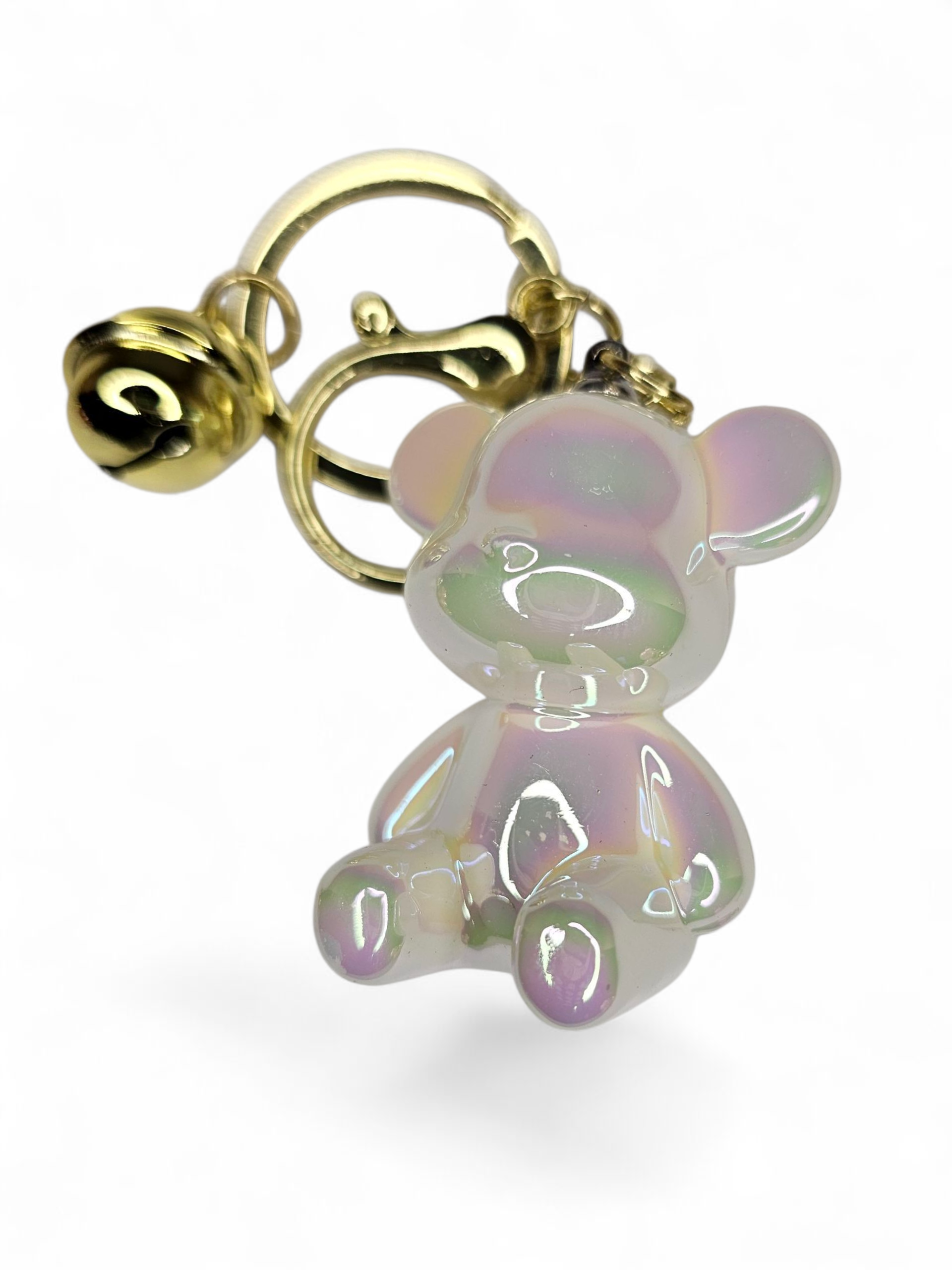 Een opvallende mooie grote kunstzinnge beer sleutel-, tashanger in het wit, voor aan je sleutels of tas.