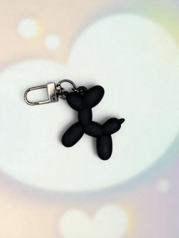 Een opvallende mooie kunstzinnge ballon dog sleutel-, tashanger in het zwart, voor aan je sleutels of tas.