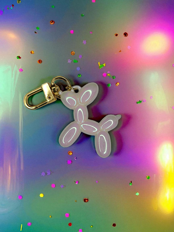 Een opvallende mooie kunstzinnge ballon dog sleutel-, tashanger in het wit, voor aan je sleutels of tas.
