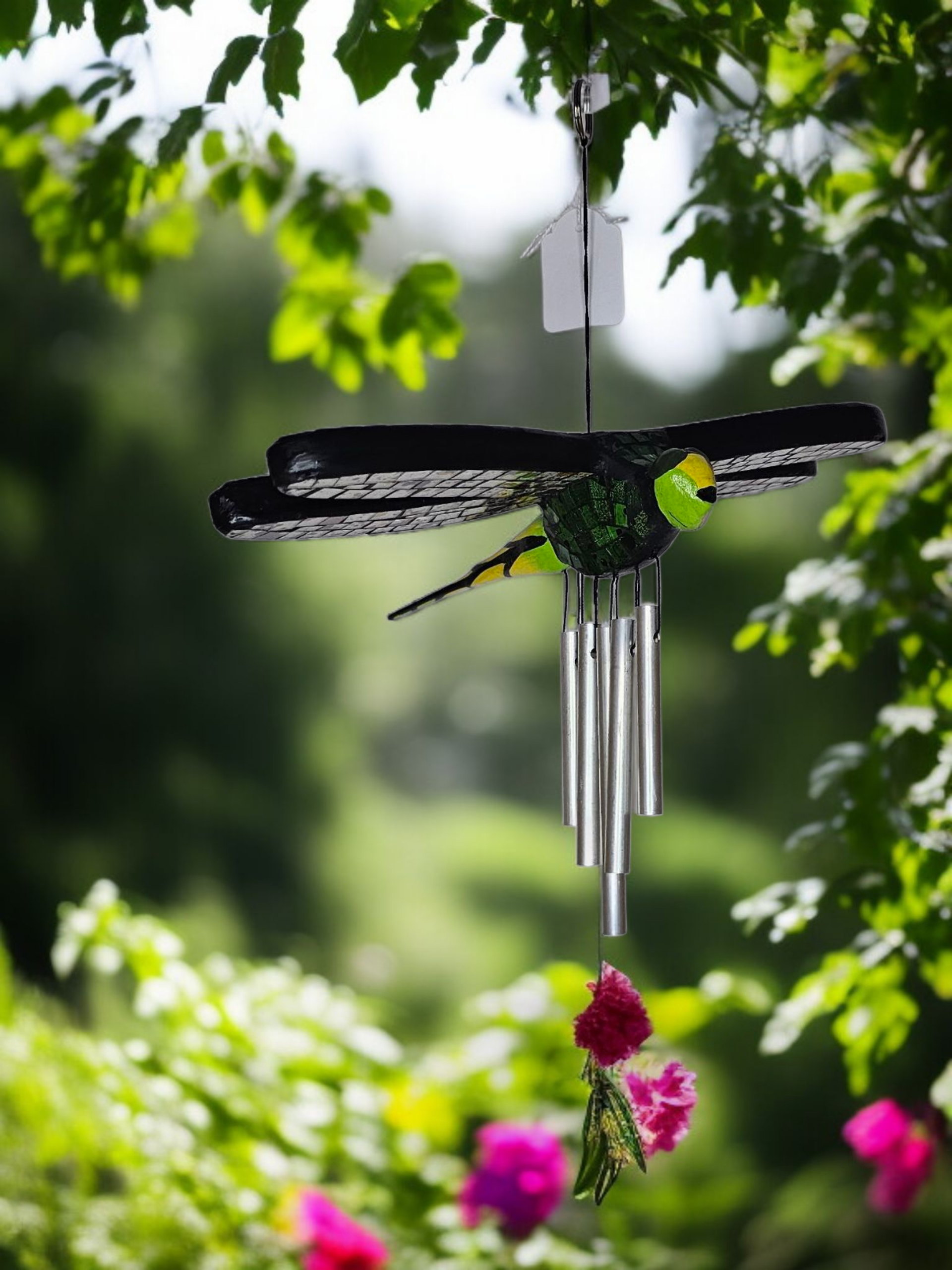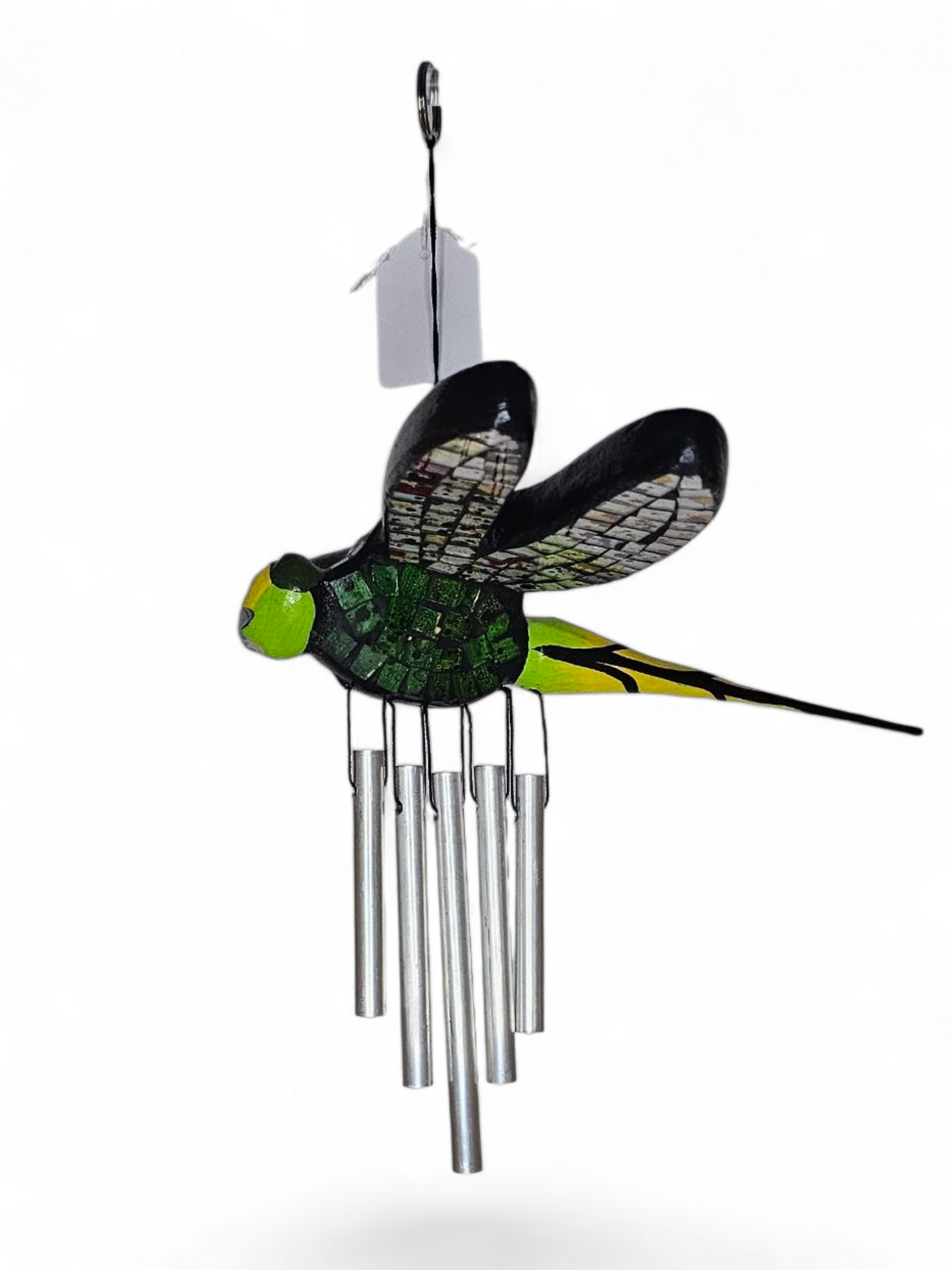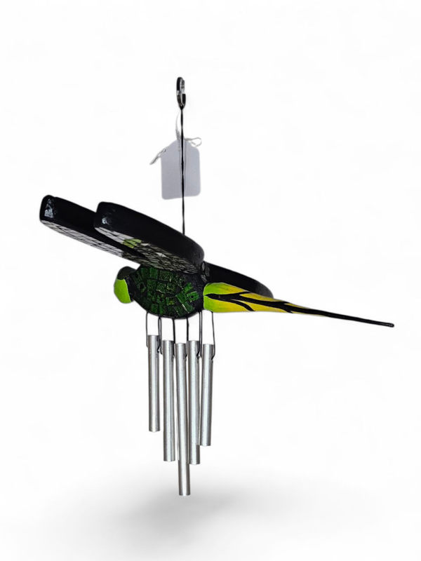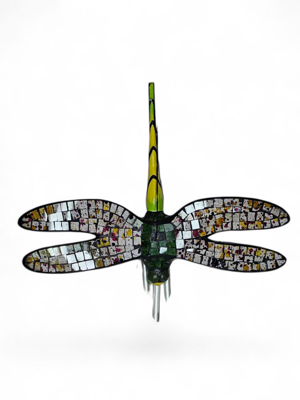 Een unieke en handgemaakte mobiel libelle ingelegen met mooie glanzende steentjes. De afmetingen zijn ongeveer 25 x 20cm. Het is fair trade product, dat wil zeggen: ambachtelijke, duurzaam en een eerlijke prijs voor de maker.